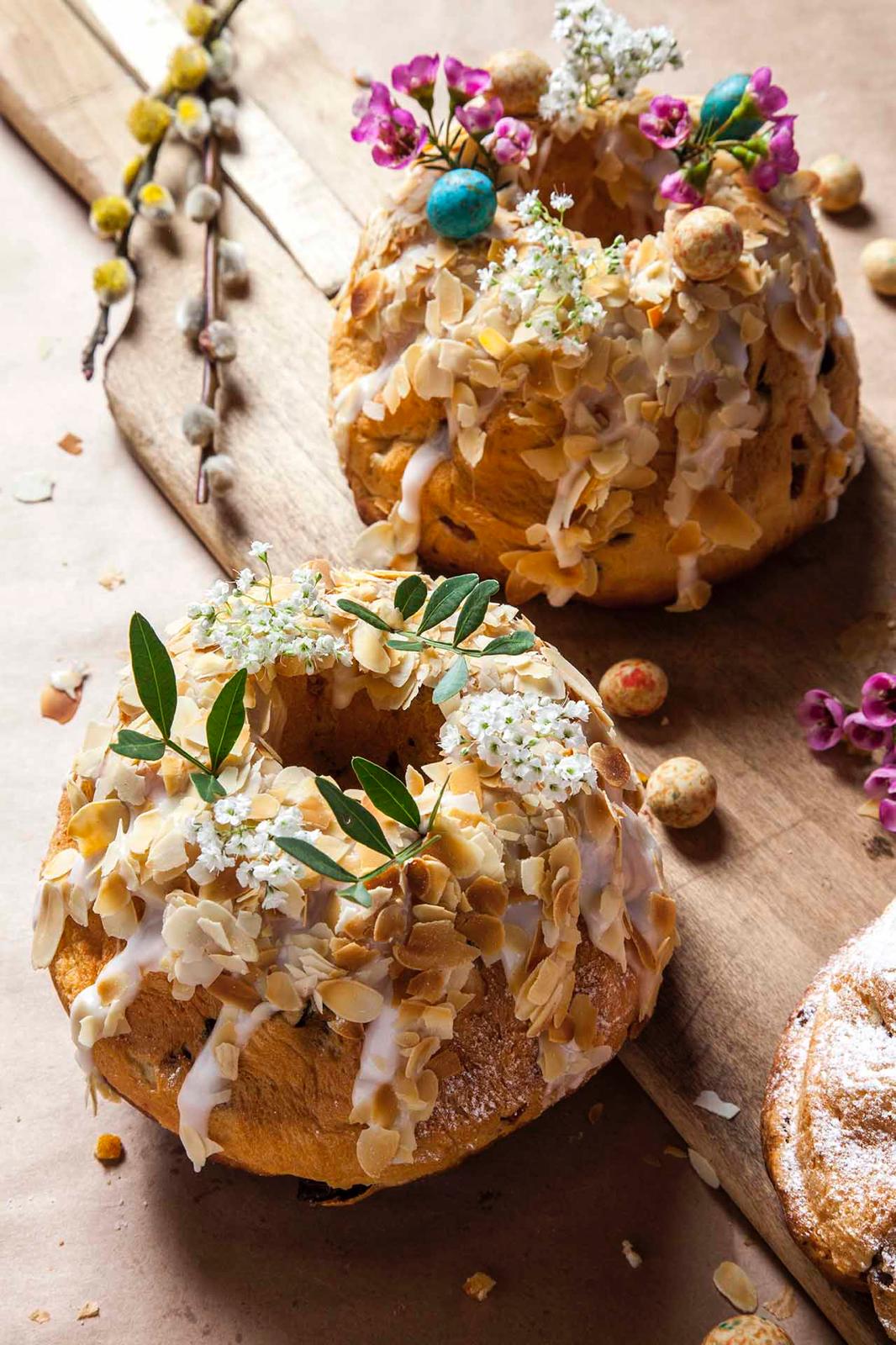 Klasyczna, miękka i puszysta, z bakaliami, polana lukrem, świątecznie ozdobiona.